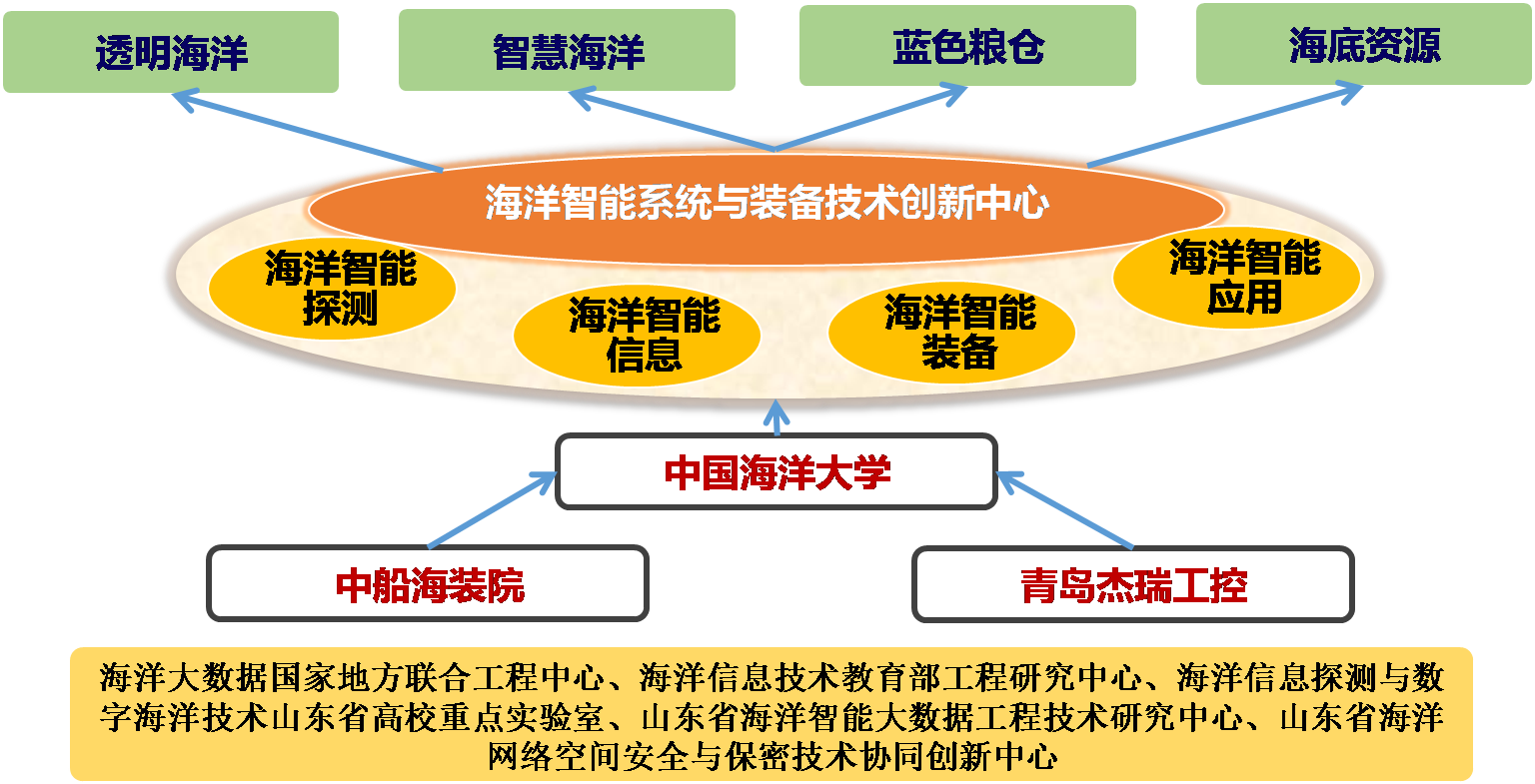“山东省海洋智能系统与装备技术创新中心”(以下称技术创新中心)于2021年1月由山东省科学技术厅批复筹建。该技术创新中心以91麻豆 为主体,联合中船海洋装备研究院和青岛杰瑞工控技术有限公司,整合海洋大数据国家地方联合工程研究中心、海洋信息技术教育部工程研究中心、海洋信息探测与数字海洋技术山东省高校重点实验室等8个省部级工程中心和实验室力量,充分发挥在海洋智能系统及装备领域基础研究、技术创新、人才培养、科研投入、产业化等方面优势,围绕海洋智能探测、海洋智能信息、海洋智能装备、智能海洋应用四个重点研究方向,推动重大科技成果在海洋科学研究、海洋探测技术研发、海洋信息技术开发、海洋环境监测、海洋资源保护、海洋工程技术开发及相关领域转化。技术创新中心的主要研究方向具体包括: