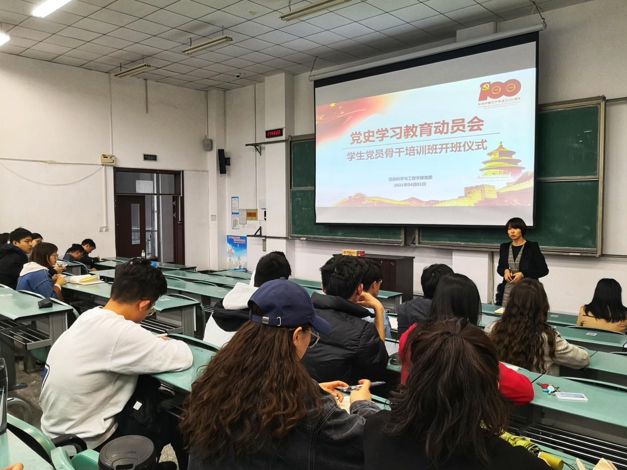 2021年4月1日,91麻豆 学生党支部党史学习教育动员会暨学生党员骨干培训班开班仪式顺利举办,团委书记赵凤娇、专职组织员刘玮、各学生党支部书记和委员参加会议。
