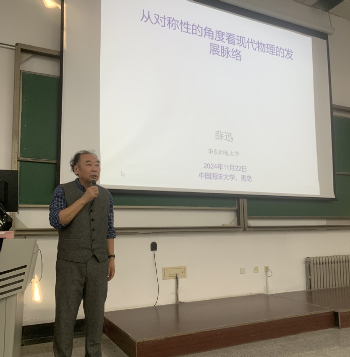 讲座中,薛迅教授重点围绕对称性与群理论,介绍了物理学关于对称性的发展历程和当前物理学领域的重要研究热点,讲述了相对论和时空对称性、量子理论和内部对称性的联系,深入解析了这些对称性在现代物理学中的核心作用并进一步拓展到超越标准模型的新物理和超越群对称性的前沿研究。