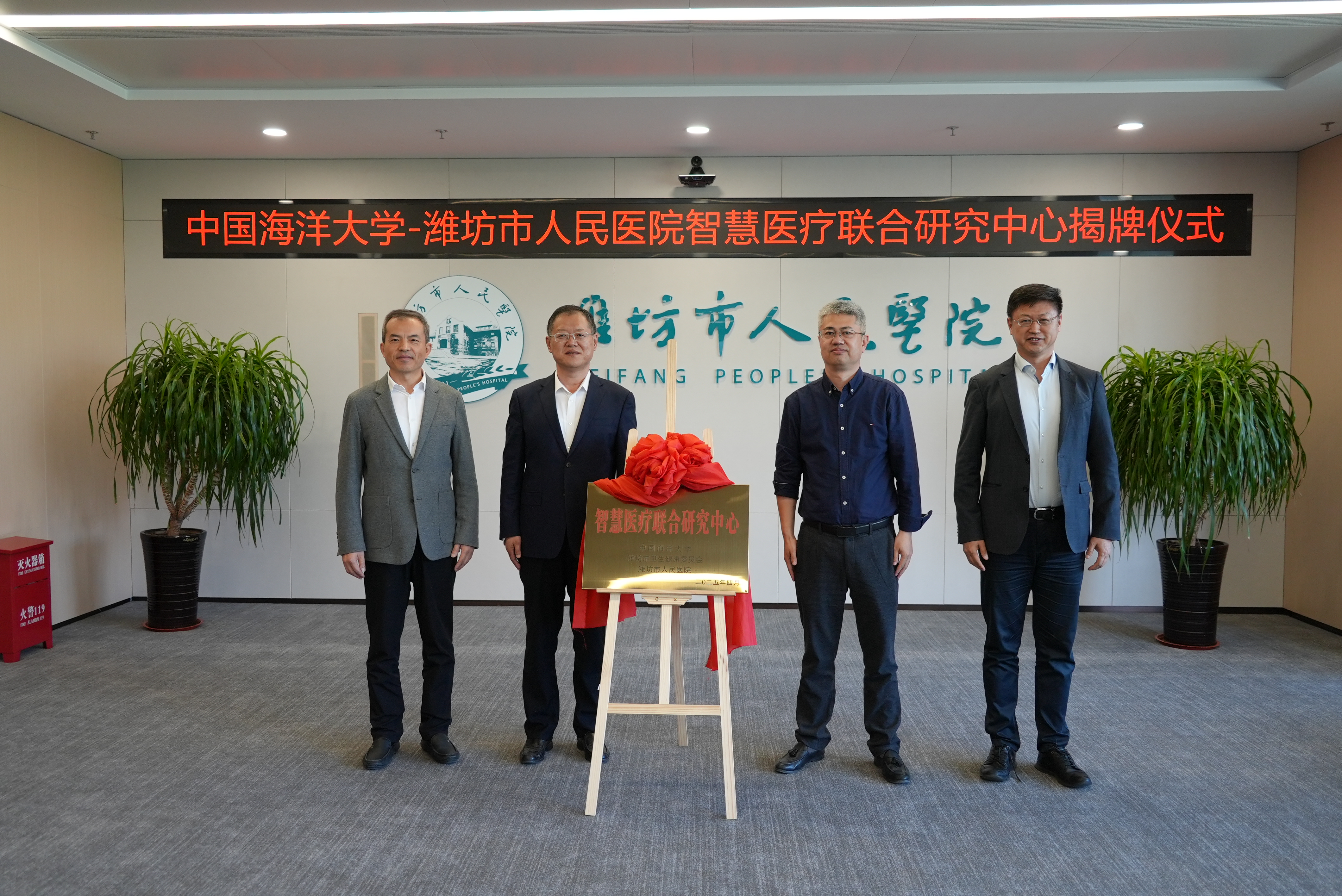 仪式上,张永胜、董军宇、苏茂泉、王红波共同为“智慧医疗联合研究中心”揭牌。