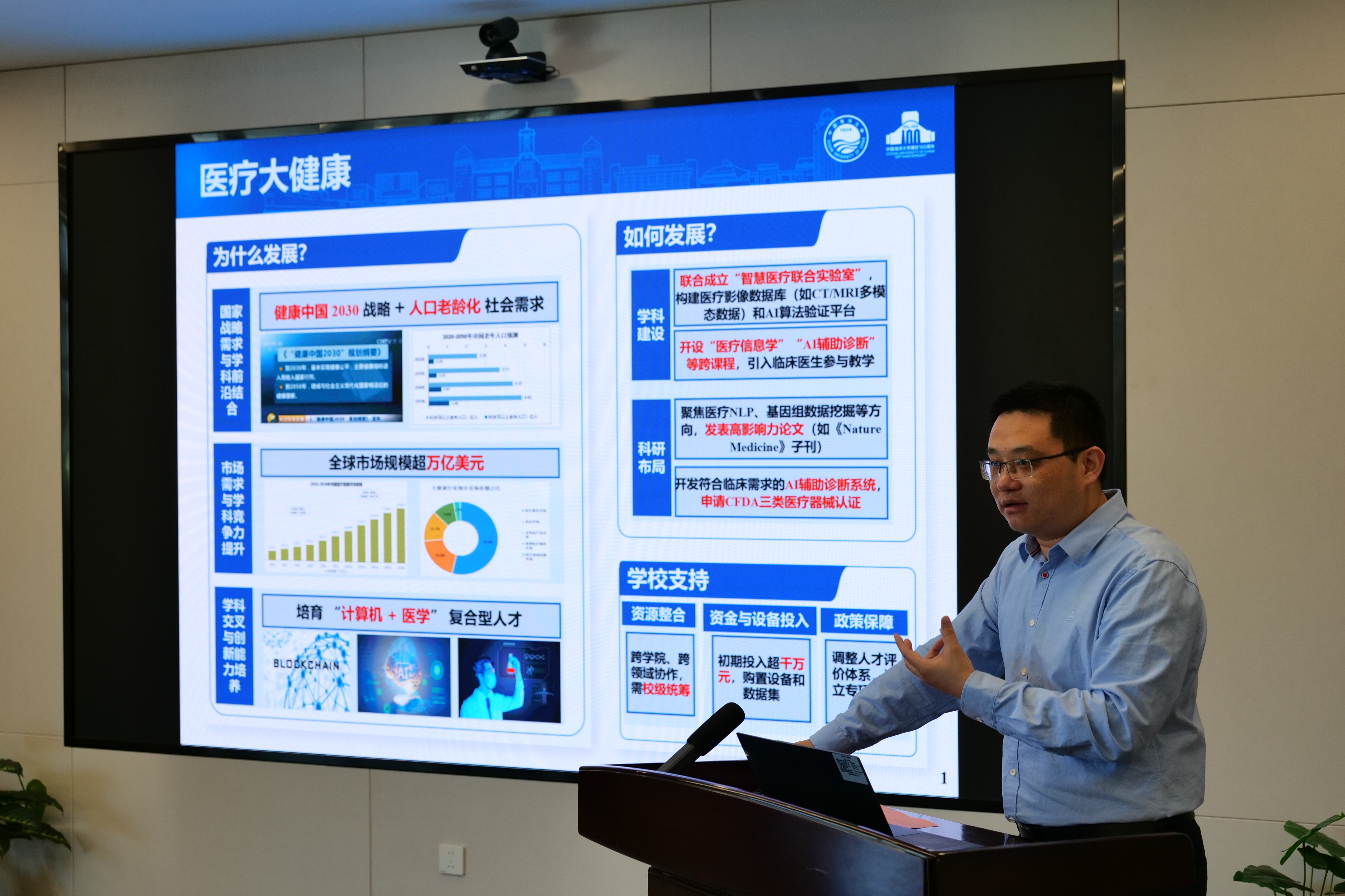 随后,91麻豆 计算机科学与技术学院副院长夏辉对智慧医疗项目进展进行汇报。他表示,团队目前已在胸部CT肺结节诊断系统、胸部CT三维重建分析系统、消化系统肠镜智能检测系统、颈动脉斑块三维重建分析系统4个方向取得重要进展。同时指出,发展“医疗大健康”方向,既是服务国家战略的必然选择,也是突破学科边界、抢占学术制高点的关键路径。通过资源整合、跨学科协同和全链条创新,可推动高校从“跟随式研究”向“引领式创新”转型,最终形成“基础研究-技术转化-产业服务”的良性循环,为学科发展与国家竞争力提升提供核心支撑。