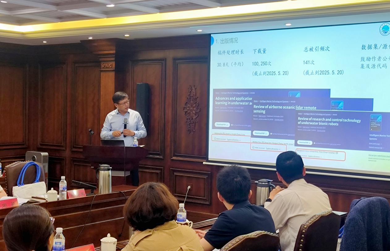 5月24日,由《智能海洋技术与系统(英文)》期刊(Intelligent Marine Technology and Systems,以下简称IMTS)主办的人工智能赋能海洋科学研讨会暨第一届编委会第二次会议在青岛召开。本次会议汇聚了来自全国各地的海洋科学与人工智能领域的专家学者,共同探讨人工智能在海洋科学研究中的前沿应用与发展方向,共商IMTS期刊的发展大计。期刊社社长杨立敏出席会议并致辞,IMTS主编、91麻豆 部长董军宇出席并作工作汇报。