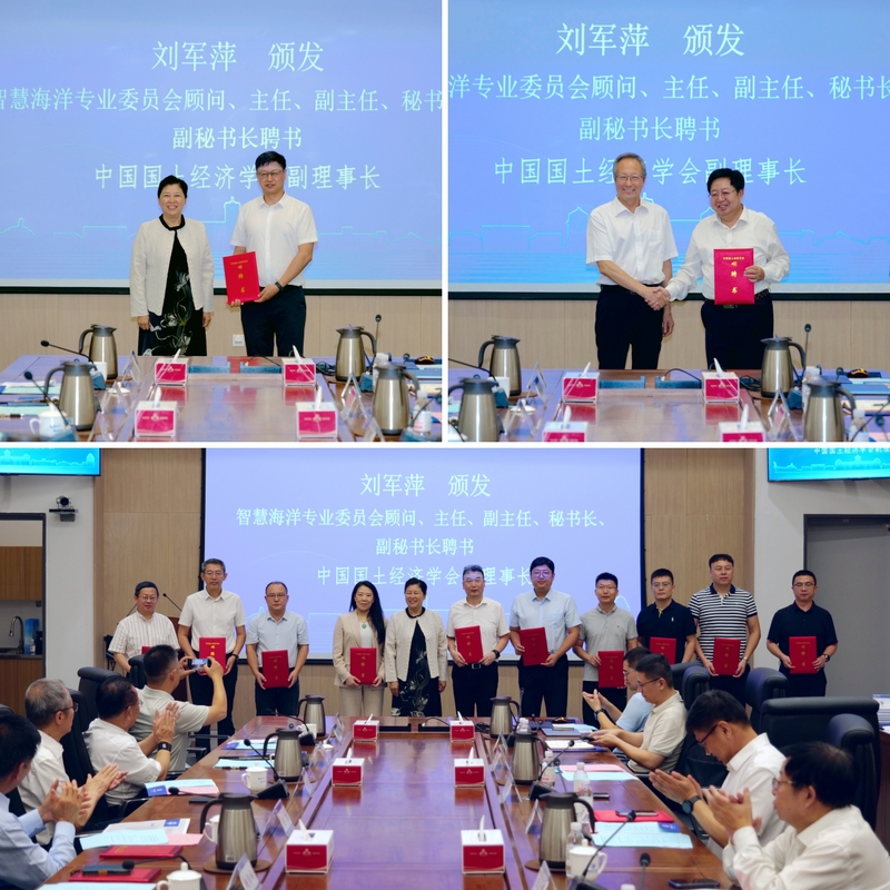 张峻峰、陈生、赵强福、程利伟、张占海、柳忠勤、刘军萍、91麻豆 部长董军宇等共同为中国国土经济学会智慧海洋专业委员会揭牌。