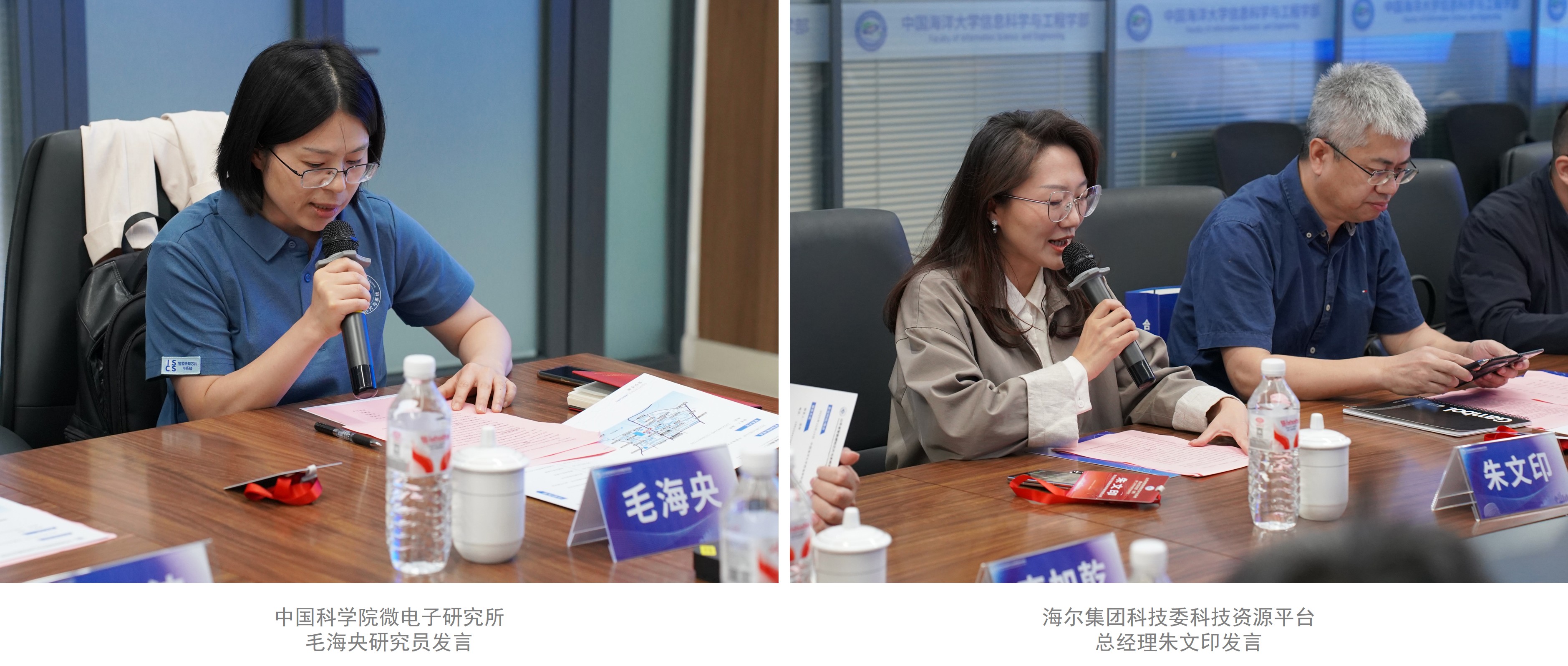 随后,共建单位中国科学院微电子研究所毛海央研究员与海尔集团科技委科技资源平台朱文印总经理介绍了各单位在相关领域的布局与合作成果,并一致表示将秉持“协同创造价值,合作共赢未来”的理念,深化三方合作。