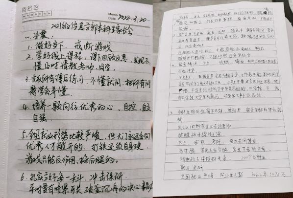 2021级辅导员冷震指出,网课不是自我放松、懈怠懒惰的歇脚点,而是查漏补缺、自我提升的加油站,课上不理解的问题一定要及时反思,请教老师,按时巩固。同时,针对当前就业形势的严峻性,冷震希望家长要提早督促学生树立正确的就业观,扎实专业本领,培养一颗向往优秀的心,做到自控、自立、自强。