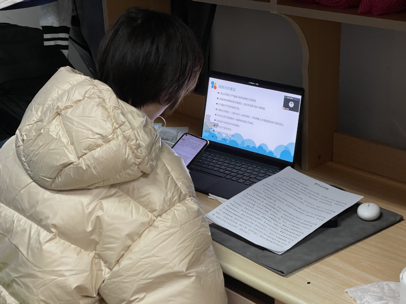 针对上网课以来学生的学习状况,辅导员指出,自网课开展以来,部分同学存在自身自律性较差、学习懈怠的问题,难以抵制游戏等的诱惑,希望家长能多加关注学生的学习状态,提醒学生按时上网课,警惕学生沉溺网络游戏,及时与辅导员沟通交流。封校期间,宿舍是学生的主要生活场所,同学间可能会因为作息习惯、卫生习惯、上下楼噪音等产生矛盾,希望家长及时疏导,或联系辅导员进行调解。