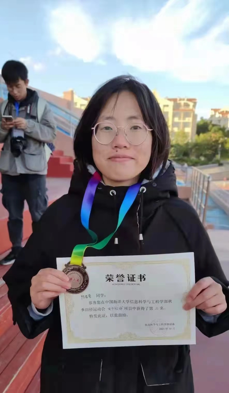 “人虽然渺小,人生虽然短促,但是人能学,人能修身,人能自我完善,人的可贵在人自身。”我一直把杨绛先生的这句话作为自己的座右铭,不断勉励自己。正值青春年少,还有无限可能等待被发掘,我愿意从做好小我开始,用知识武装头脑,去找寻心之所向,让自己在探索中发挥自身的价值。生活中,我愿意成为身边人的一束光,给彼此带来欢乐;学习上,我勤奋刻苦补足短板;工作中,我认真负责,乐于奉献。作为海大急救队创始人之一及辅助线数学公益平台外联部成员,我积极参加各项志愿服务工作。我热爱排球运动,加入学部排球队,在校庆杯排球比赛中取得第四名的好成绩。作为一名中共预备党员,我在行动中积极向党组织靠拢,在实践中得到成长,以实际行动践行全心全意为人民服务的宗旨。