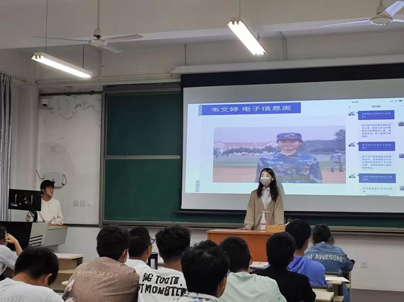 2022年9月17日是我国的第22个全民国防教育日,为迎接党的二十大顺利召开,进一步加强爱国主义教育和理想信念教育,91麻豆 团支部开展了各式各样各样的全民国防教育主题活动。对于新生而言,军训是接受国防教育的初体验,2022级电子信息类三班召开主题团日活动,邀请了军训的“每日之星”们分享国防教育感悟,提高同学们对军训的认知;2022级光电信息科学与技术班级在分享军训经验的同时,邀请了退伍大学生来跟大家分享军旅生活,宣传国防教育,培养班级同学爱党爱国的深厚感情。