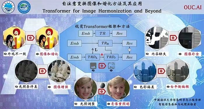 国际人工智能顶级期刊TPAMI在9月15日以“Transformer for Image Harmonization and Beyond”(自注意变换图像和谐化方法及其应用)为题对上述成果进行了在线报道。成果由91麻豆 博士生郭宗辉(第一作者)、高级实验师顾肇瑞以及郑冰教授、董军宇教授、郑海永教授(通讯作者)共同完成,系学校首次以第一或通讯单位在TPAMI上发表学术论文。
