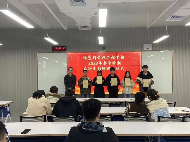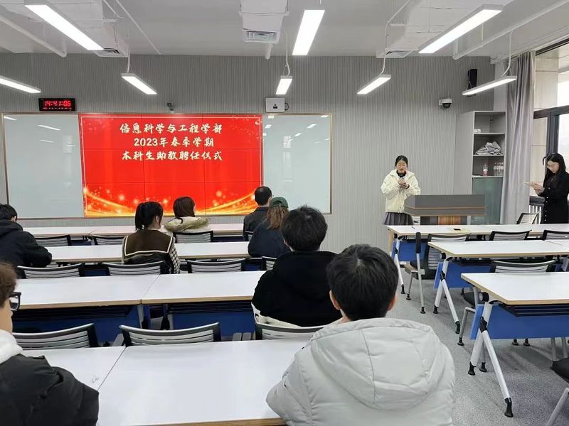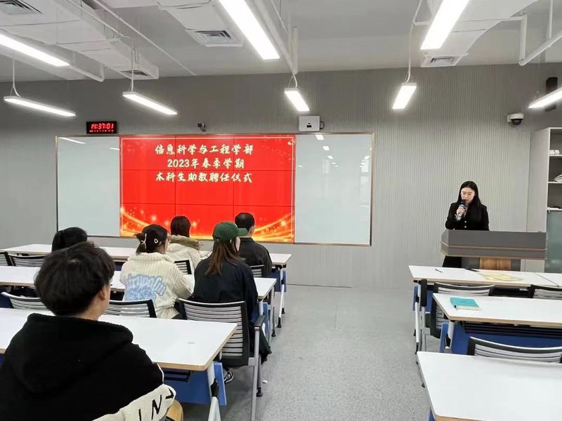 2023年4月6日,91麻豆 2023年春季学期本科生助教聘任仪式在西海岸校区信息南楼C202举行。本次聘任仪式由91麻豆 辅导员杜昆玉主持,学部团委副书记高剑宇、辅导员吴正哲和2023年春季学期本科生助教代表参加仪式。