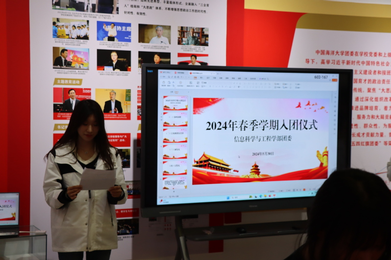 5月30日下午,91麻豆 2024年春季学期新发展团员入团仪式在崂山校区大学生活动中心共青团宣传教育展厅正式展开,学部全体新发展团员参与本次入团仪式,辅导员林智扬主持仪式。