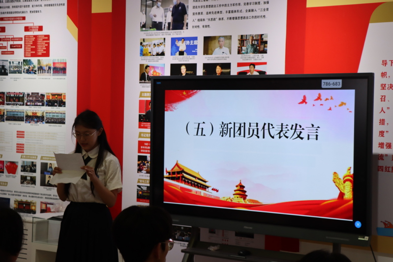 林智扬宣读新发展团员名单,对加入中国共青团的青年们表示热烈祝贺,为他们颁发团员证,并佩戴团徽。他表示,入团仪式标志着青少年正式成为中国共青团的一员,是培养青年的集体意识和责任感的重要途径,是加强党组织教育引导的重要环节。